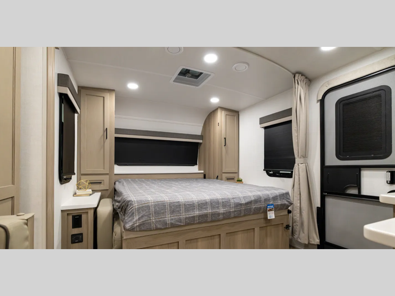 Sleeps 2 Slides 1 Length 22 ft 2 in Ext Width 8 ft Ext Height 10 ft 5 in Hitch Weight 640 lbs Dry Weight 4789 lbs Cargo Capacity 1600 lbs Fresh Water Capacity 54 gals Grey Water Capacity 29 gals Black Water Capacity 29 gals Furnace BTU 35000 btu Available Beds RV Queen Murphy Refrigerator Type 12 Volt Cooktop Burners 3 Number of Awnings 1 LP Tank Capacity 30 lbs Water Heater Capacity 6 gal Water Heater Type Quick Recovery Gas/Electric AC BTU 15000 btu TV Info LR 12V TV Awning Info 15' Power with Adjustable Rain Dump and LED Lights Axle Count 2 Number of LP Tanks 2 Shower Type Standard Solar Wattage 200 watts Similar Floorplans