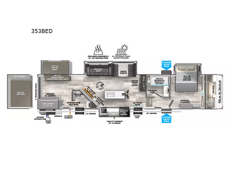 | Awning Info | 13' & 20' LED | Washer/Dryer Available | Yes |